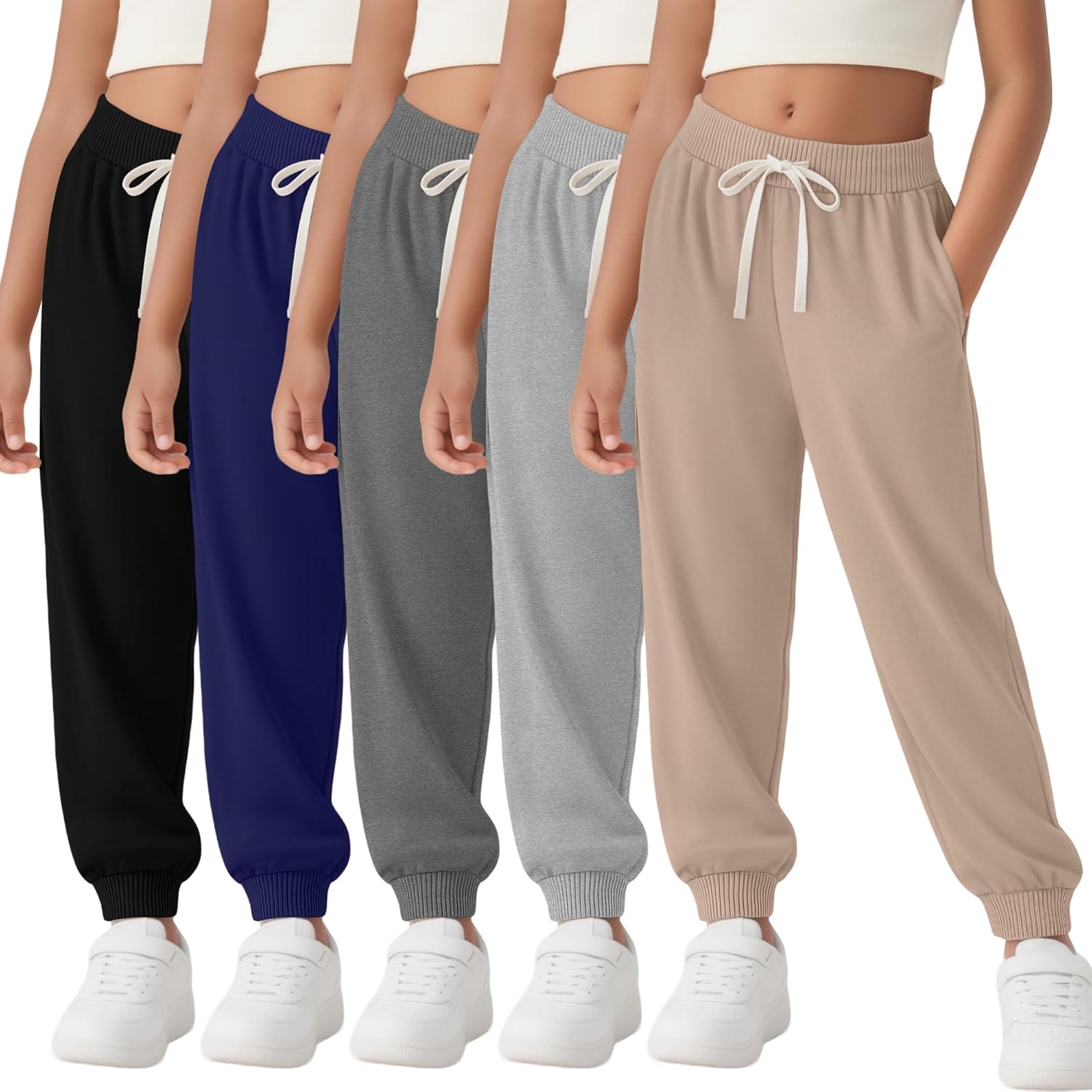 Features: Soft & durable: The blend in these soft girls sweatpants ensures lasting comfort and shape. They stay gentle wash after wash, making these girls jogger pants a dependable and cozy option for daily wear. Value 5 pack: This 5-pack of kids girls sweatpants offers excellent value with multiple pairs for a child's wardrobe. These youth girls sweatpants are designed for a comfortable fit during various activities and lounging. Specifications: Material: 80% Polyester, 15% Cotton, 5% Spandex Size: from 5 to 16 Years Package includes: 5 x Girls joggers sweatpants Notes: Manual measurement, please allow slight errors on size. The color may exist a slight difference due to different screen displays