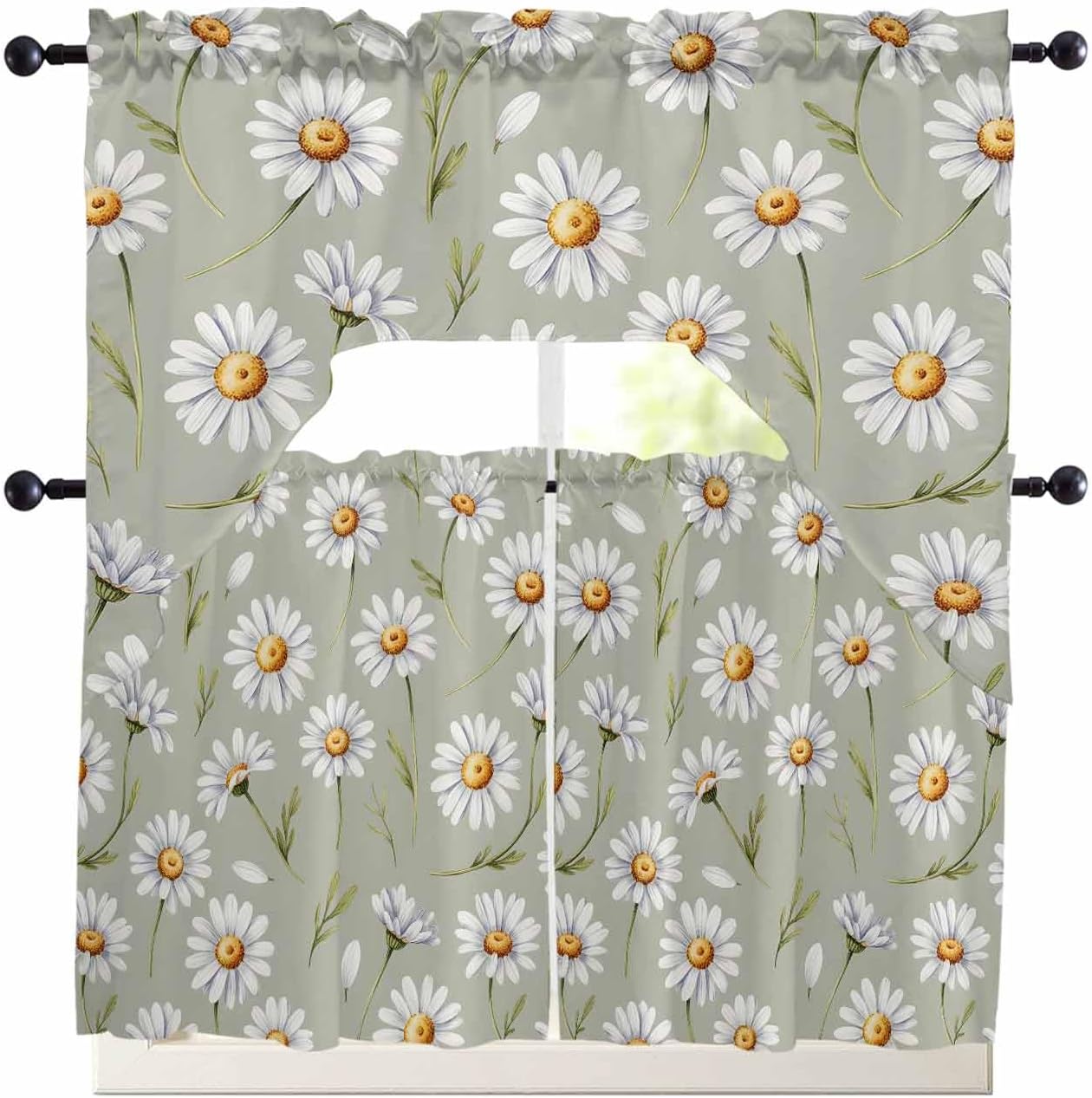 Energy saving Nice design What else does an elegant curtain set offer Used on lower/upper sections of windows, or used alone on shorter lengths of windows, to help block or block light. Providing you with the necessary privacy without losing light, protecting your interior furniture and rugs from direct morning sunlight. Very suitable for shading need of life, it has shading, heat insulation uv protection.Beautiful printed kitchen curtain set with swag valance will make any window in your home the center of attraction. You can choose the 3 piece set which includes 2 tiers and 1 valance for windows or just the swag valance to decorate the top of your window. Features - 3-inch rod pocket. Decorative window cover set for home and small windows. Interior Decoration - cortinas para cocina suitable for kitchen, café, sink, basement, bedroom, laundry rooms and bathrooms. Can also be used in closets and shelves. Easy to Use - Machine washable in cold water, gentle cycle and hang to dry. No shrinkage, no color loss, no wrinkles. Show your personality and make a statement with your kitchen decor Kitchen swag curtains tier and valance sets serve multiple functions. They increase the visual appeal of a room, add privacy, and screen out natural light. The good technique to prevent light from hitting the glass when working in the kitchen is to use cute curtains that match your decor. We use a variety of sewing techniques to ensure seams stay in place, corners are crisp, and miters are well mitered. Upgrade your kitchen decor with this cute kitchen curtains set and enjoy the beauty and functionality it offers. We provide you with many sizes and colors, before hanging swag window curtains, please measure your rod width and the length of your window, and then choose the suitable size.
