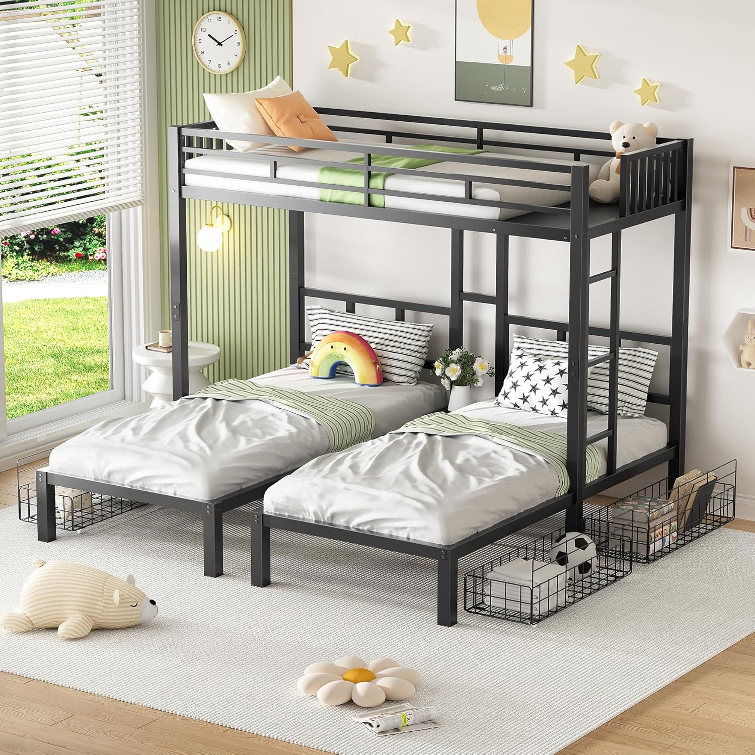 Separatable Bunk BedMade of sturdy steel with anti-rust coating, this twin over twin bunk bed is solid and durable to meet the heavy-duty load support. The bunk design doesn’t only save the sleeping space. The clearance underneath the bottom bed also provides the storage space for your belongings. With the detachable design, this bunk bed can be separated to 2 twin beds, depending on what you need. This twin over twin bunk bed is a perfect space-saving solution for you to choose.