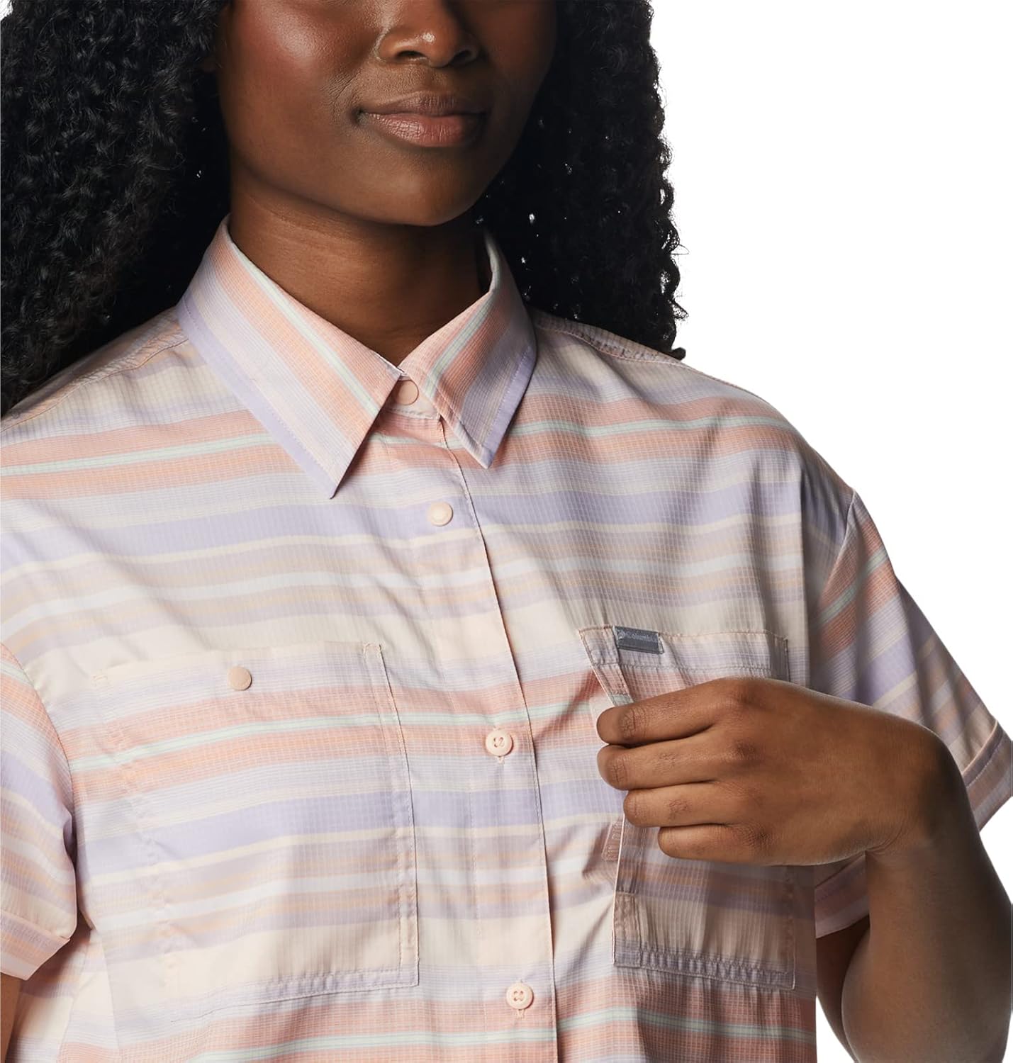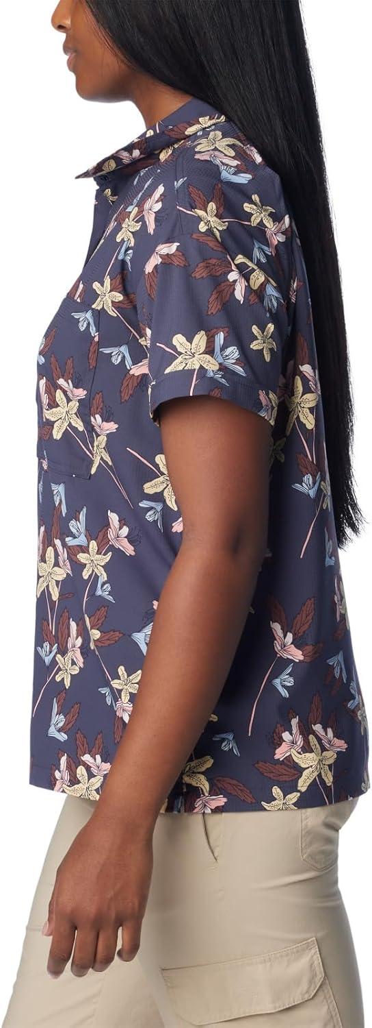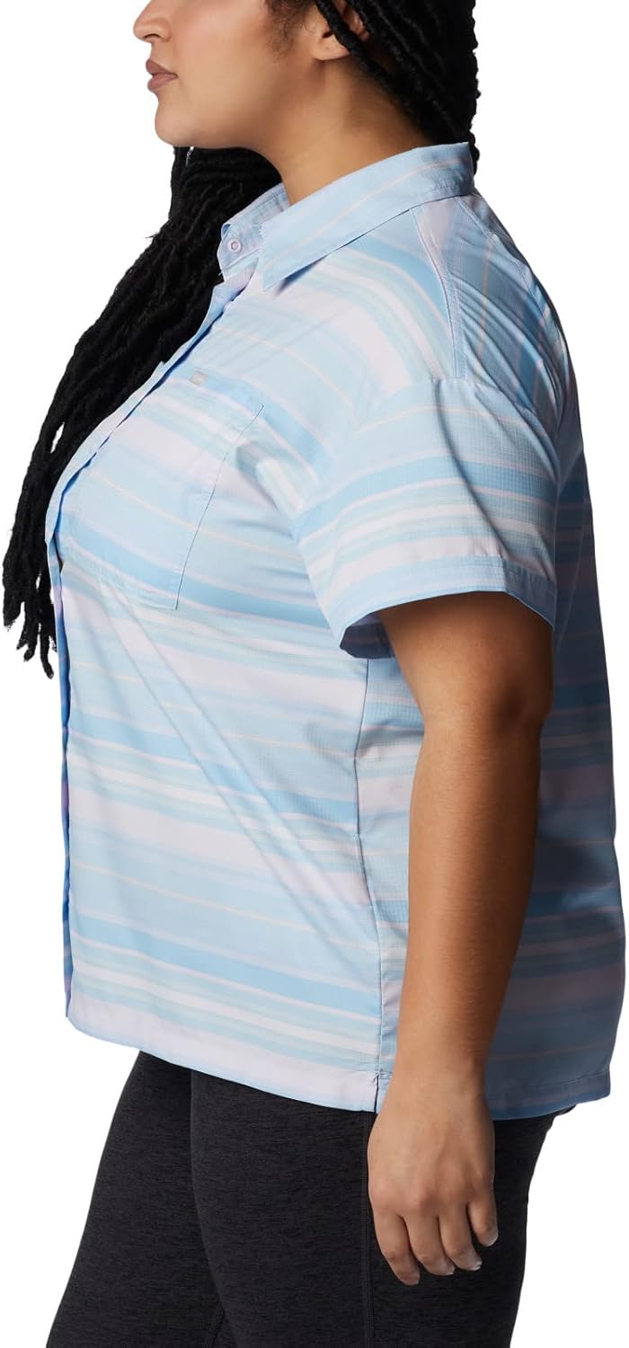 Designed for outdoor, travel, and life, this vented shirt wicks away sweat and provides UPF 50 sun protection. Plus, it's made with 100% recycled fabric. Columbia offers this shirt in multiple colors and sizes. Relaxed fit.