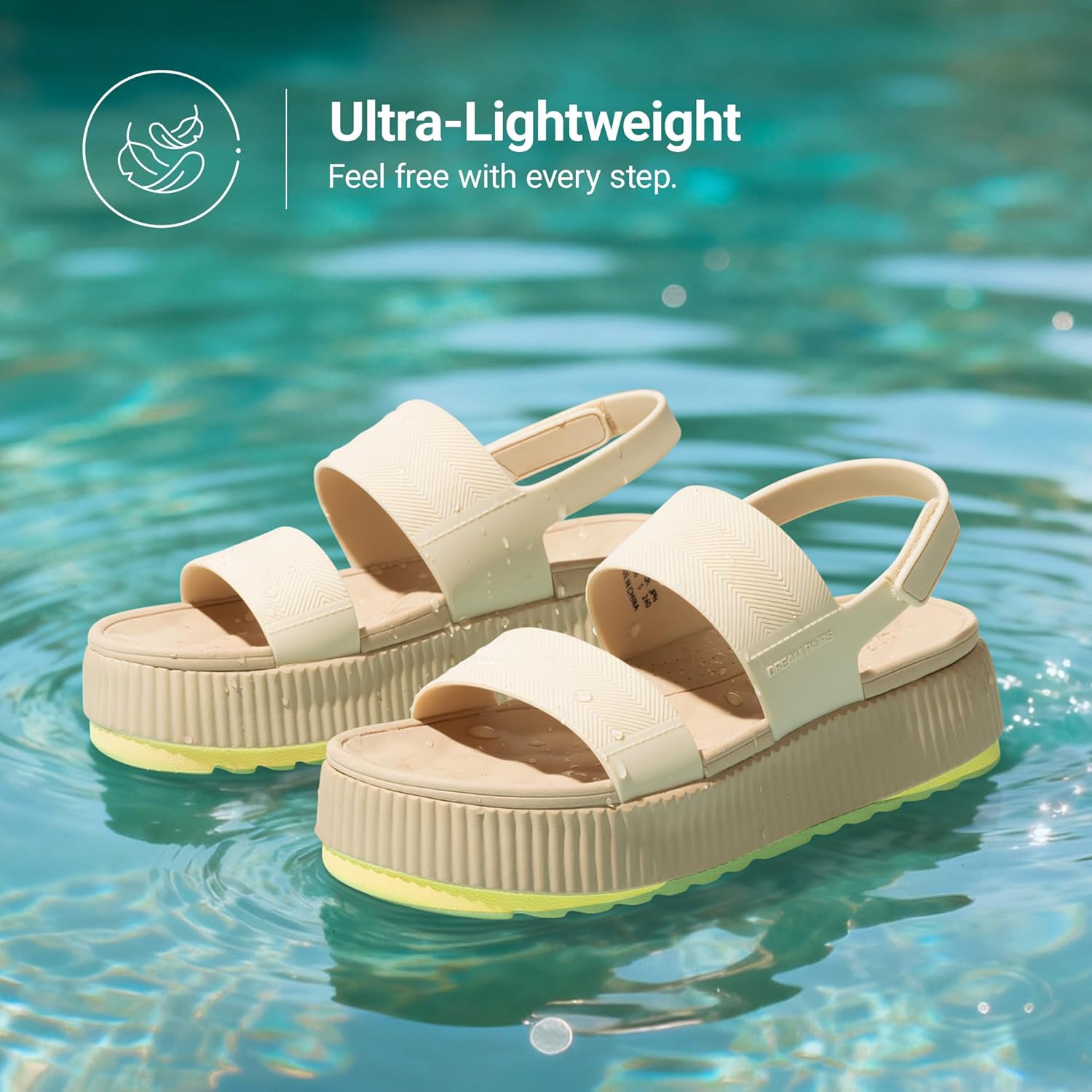 Step into summer with these chic platform sandals for women. Airy and lightweight, they ease fatigue while a soft, textured footbed cradles your feet. The water-resistant TPU upper wipes clean in seconds, and the 1.69-inch platform adds a flattering lift that elongates your legs. Finished with a lug outsole for reliable traction, these sandals pair effortlessly with dresses, shorts, or casual denim—bringing modern ease to every step.