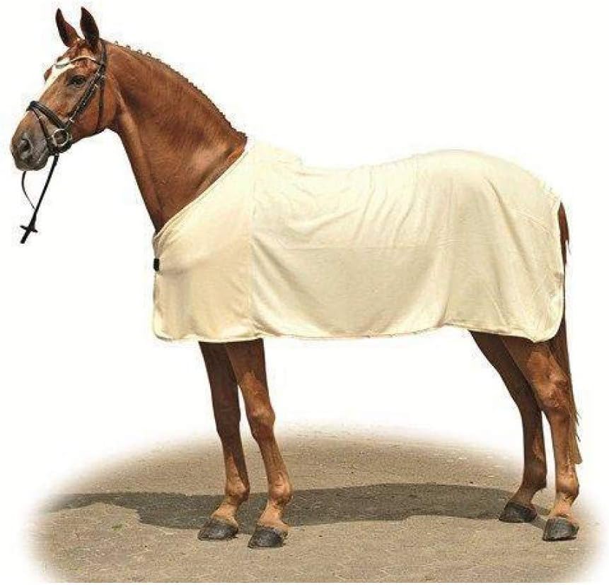 Breathable and durable cooler blanket for the horse on the pasture, in the stable or padock. The high-quality knitted fabric is easy to clean, has a high heat retention thanks to polar fleece and optimal sweat absorption. The fleece is double-sided and extra soft. The horse blanket is equipped with tail straps, padded withers, integrated strand, extra long sides and an extra high cut.