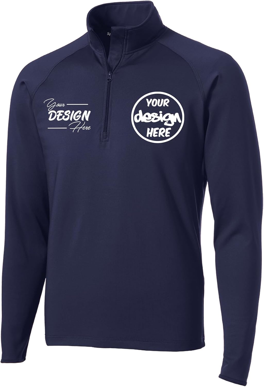 Custom DTF (Direct to Film) printing, quarter zip super stretch, men size , An Extremely flexible layer with a soft brushed backing and moisture control for year-round comfort