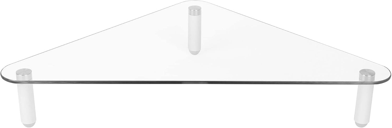Elegant minimalist design. Extra-wide monitor riser holds two monitors. Ample space to place accessories and store keyboard underneath. Strong tempered glass platform. Sleek designer-look white legs with non-skid feet.