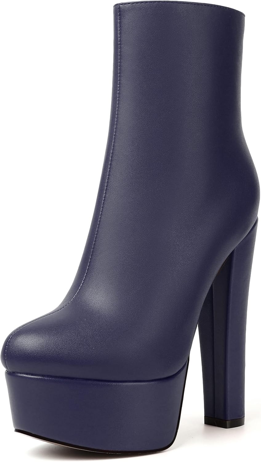 MERRORI Womens Solid Round Toe Zip Platform Dress Office Matte Chunky High Heel Ankle High Boots 6 Inch