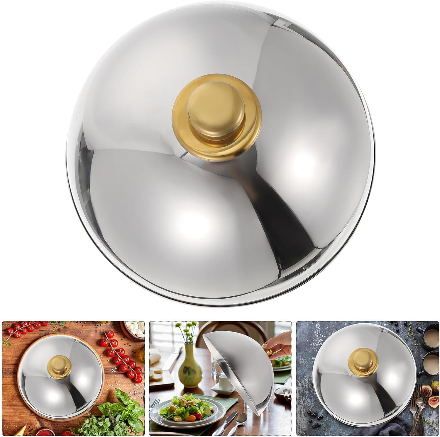 Package List 1 x Lid Features -Color: Silver -Size 10 inch: About 25.50X25.50X14.50cm/10.02X10.02X5.70in -Product Info:Dome vegetable cover -Size 12.5 inch: About 32.00X32.00X17.50cm/12.58X12.58X6.88in -Material: Stainless Steel - Perfect for both outdoor and home use, very practical and useful reusable food covers. - Multi-purpose stable and , not easy to rust so that it can protect your food to keep . - It can be stored conveniently, , , heat preservation and keep fresh Kitchen Food Cover. - This product has creative design, makes your kitchen looks clean and tidy food insulation cover. - It also can be used to cover different food, such as cake, vegetable, etc stainless steel basting cover.Goods Descriptionhot food insulation cover Compact and lightweight, convenient to carry.cooker top cover Simple design, chic and fashion.dish food is a food cover for home or outdoor use, made of material and craftsmanship.reusable food covers Prevent foreign bodies into your food, practical and beautiful