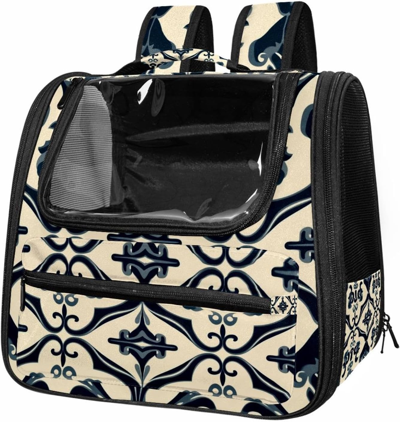 Well made: Cat Backpack Carrier is made from 900D oxford fabric, pp webbing, velvet, nylon, which is very sturdy, environmentally friendly and breathable. Not easily scratched by pet’s claws, pet backpack carrier is SAFETY & ANTI-SCRATCH. The back padding will give you a comfortable and breathable experience. Ventilated Backpack: With a breathable window in the front, this pet backpack allows cats to enjoy the sun without feeling stuffy. There are two side pockets and one big front pocket, and you can take foods or toy for your kitten pet. It is big enough for cat to turn around, and there are side pockets and hook holes, you will enjoy the greatest convenience when taking your cat out. Perfect size: Cat carrier is 15.75x9.84x13.78in/40x25x35cm. Fits most small/medium sized cat, dog, and pet. Quality fleece bed provide a comfortable place for your pet. Lightweight and easy to carry to all places. Built-in harnesses keep your naughty friends from escaping. Removable cosy mat for easier cleaning and let your pet enjoy it inside. Easy to carry: The adjustable shoulder strap of pet carrier bag help you hands-free carrying and makes it the most safe and convenient pet carrier bag for your travel. Seat belt design provide pets with safety protection throughout the trip. Pad protection keep your pets comfortable during travel. Unique Design: Innovative inside graphic design gives you a stereoscopic 3D visual experience. You also send us the photos you interest to make your unique dog or cat carrier. Pet bag is also a amazing gift for pet lover.