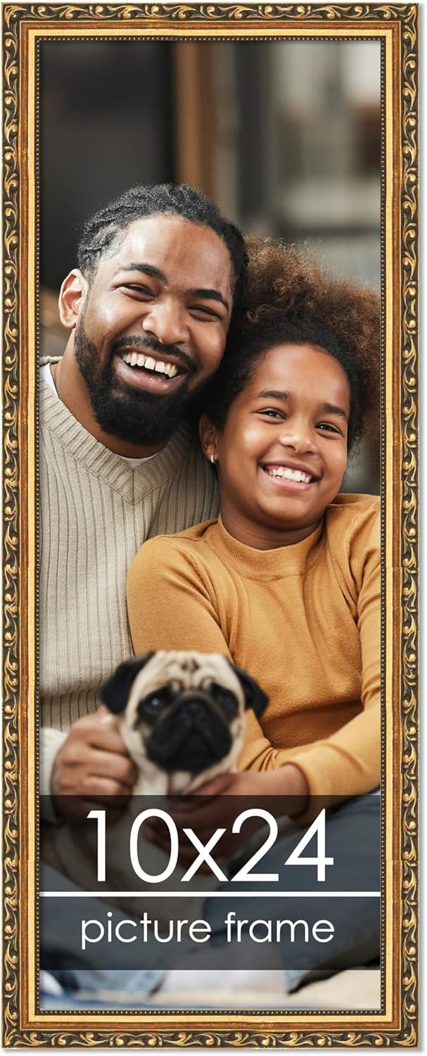 COMPLETE WOOD PICTURE FRAME Made To Display Photos, Artwork, Canvases, Chalk Boards, Documents, Mirrors, Puzzles, Mementos, Kids Drawings, Certificates, and All Other Media Measuring 4x10 Inches. OVERALL FRAME DIMENSIONS Measure 6.25 x 12.25 Inches. FRAME MOULDING WIDTH: 1.125 Inches. || FRAME RABBET DEPTH: 3/8 Inches. COMPLETE FRAME with UV Resistant Acrylic Plexiglass, Acid Free Foam Board Backing, and Hardware. Hanging hardware is included but not installed—easily attach for vertical or horizontal display. MANUFACTURED IN THE USA.