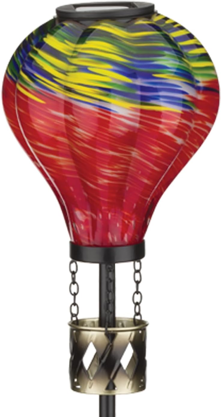 Enhance your outdoor space with the timeless charm of this hot air balloon–inspired solar garden stake, designed to bring artistic elegance and visual interest to gardens, patios, and pathways. Featuring a handcrafted Murano-style design with vibrant colors and intricate detailing, this decorative piece blends classic craftsmanship with modern outdoor décor appeal. Powered by solar energy, this outdoor solar stake absorbs sunlight during the day and gently illuminates at night, offering an eco-friendly lighting solution with no wiring or maintenance required. Ideal for garden borders, walkways, lawns, or flower beds, it adds a warm and inviting glow to your outdoor surroundings. Built for year-round outdoor use, the weather-resistant construction ensures durability and reliable performance in various conditions. Whether used as a standalone accent or paired with other decorative solar stakes, it effortlessly elevates the ambiance of any outdoor setting.
