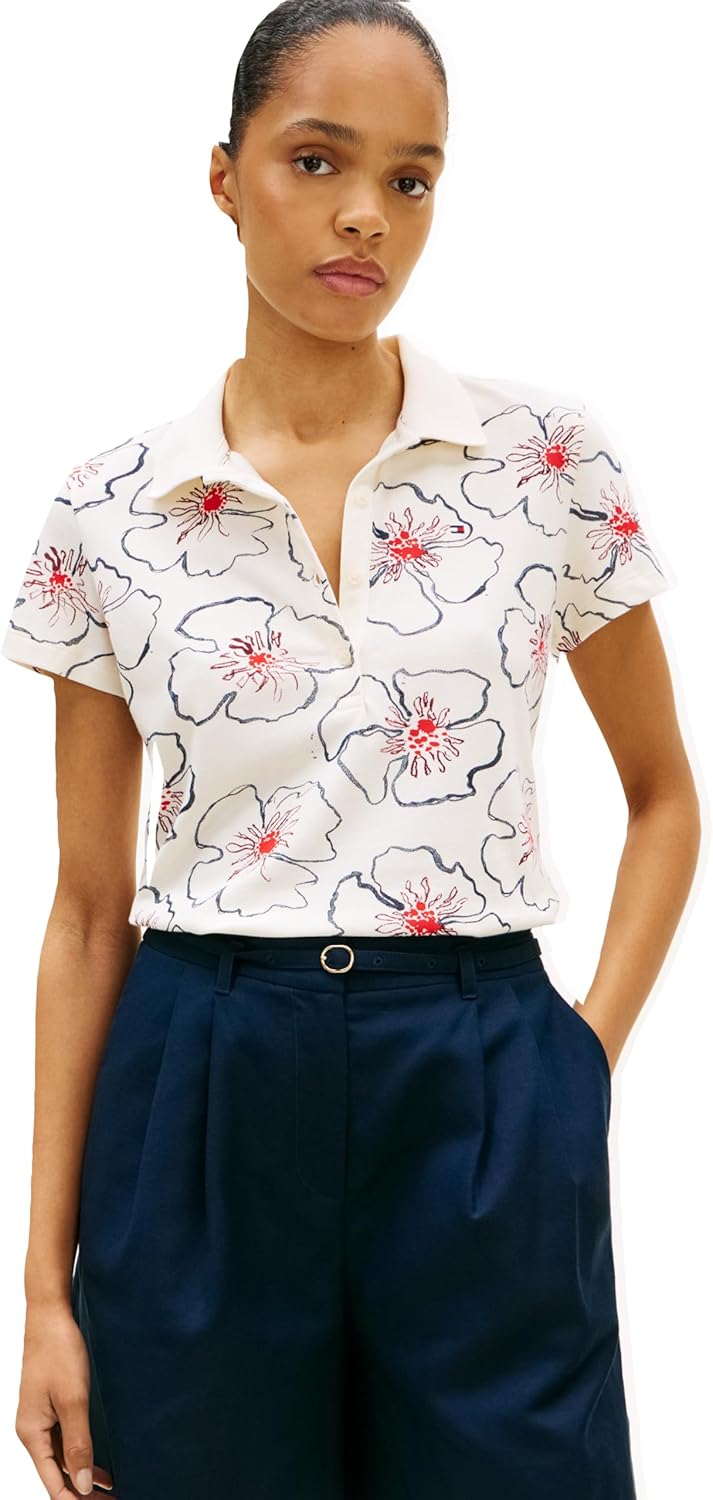 Introducing Tommy Hilfiger's iconic women's polos, featuring the signature embroidered flag logo and crafted from a premium blend of cotton with stretch fibers for a soft hand feel and comfortable fit. These polos for womens are the epitome of everyday style, perfect for effortlessly elevating your casual look. Durable enough to withstand serious wear, Tommy Hilfiger's shirts for women are breathable, crisp, and lightweight, ensuring you stay cool and comfortable every time you slip them on. The special wash process gives these polos their softness, making them a solid basic option for any wardrobe. Pair them seamlessly with your favorite Tommy Hilfiger shorts, pants, jeans, or jackets for versatile styling options suitable for any occasion, whether it's a casual outing or a formal event. Ideal for daily wear, work, school, events, vacation, or special occasions, these women's shirts are a wardrobe essential. Treat yourself or surprise a loved one with this timeless piece, perfect for mothers, sisters, girlfriends, wives, daughters, or friends. Elevate your everyday style with the unbeatable quality and sophistication of Tommy Hilfiger's women's polos.