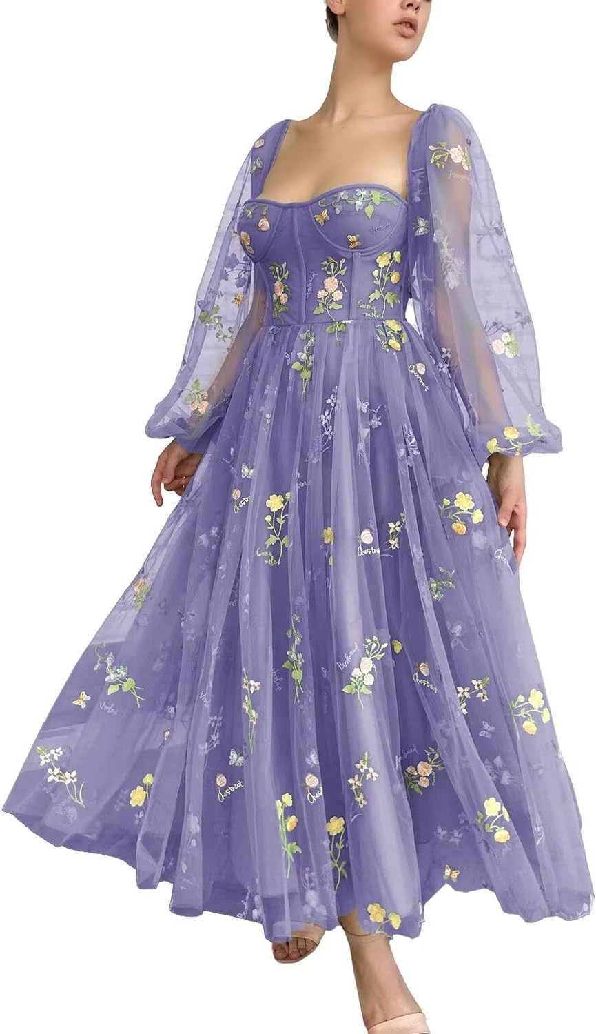 | Fabric Type | Puffy Long Sleeve Prom Dress Flower Embroidery Tulle Prom Dresses |